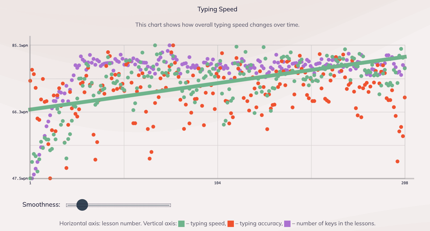 As I got bored by the nearly same metrics every year (no. of books and documentaries consumed). To challenge myself, I have found something productive while easy to measurable and improve. A new goal for me in 2022 was to improve my typing speed.