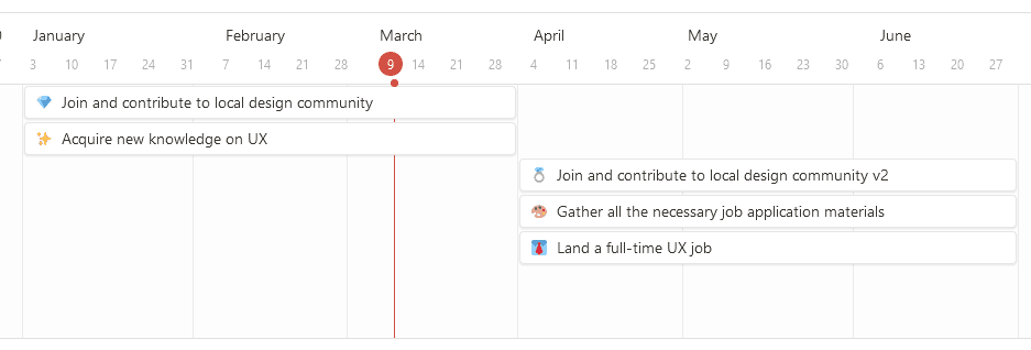 Another objective I added aside from job application, is to "Gather all the necessary job application materials" (E.g. Resume, cover letter, portfolio). It took some time for me to organise assets and deliverables of past projects, so it is great to keep track separately. Bear in mind, your portfolio should be constantly evolving after each interview session. Iterations & revising a better angle to tell your design story are the secret of a successful portfolio.