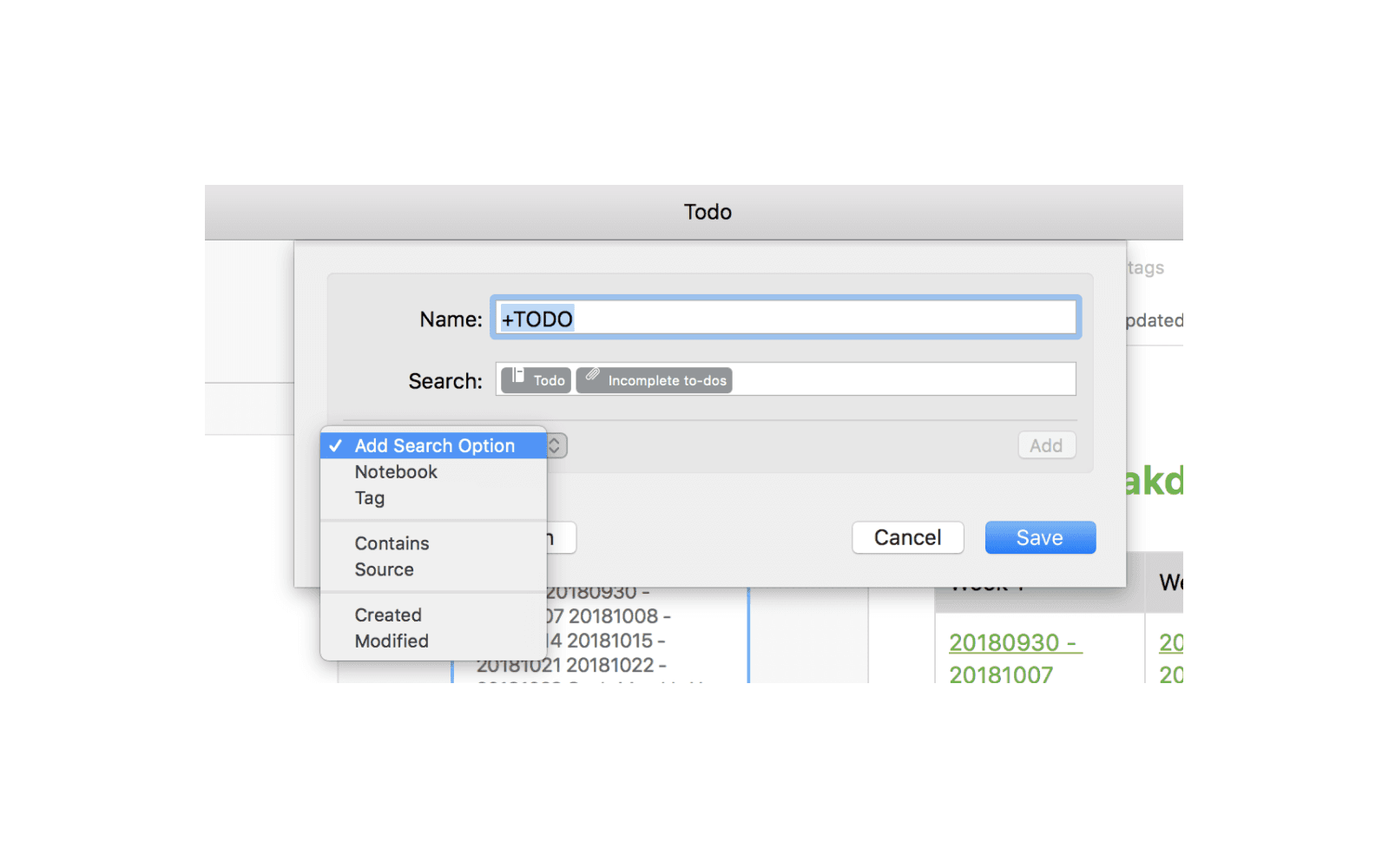 Evernote's saved search feature (also could be queried like a notebook) allows users to filter notes. In my case, I created a filter in my todo notebook, that will show all notes with unchecked boxes. This has become my main task list. Since I would cross-out checkbox even if I haven't finished the task, this to-do filter will automatically display my daily tasks and monthly tasks.