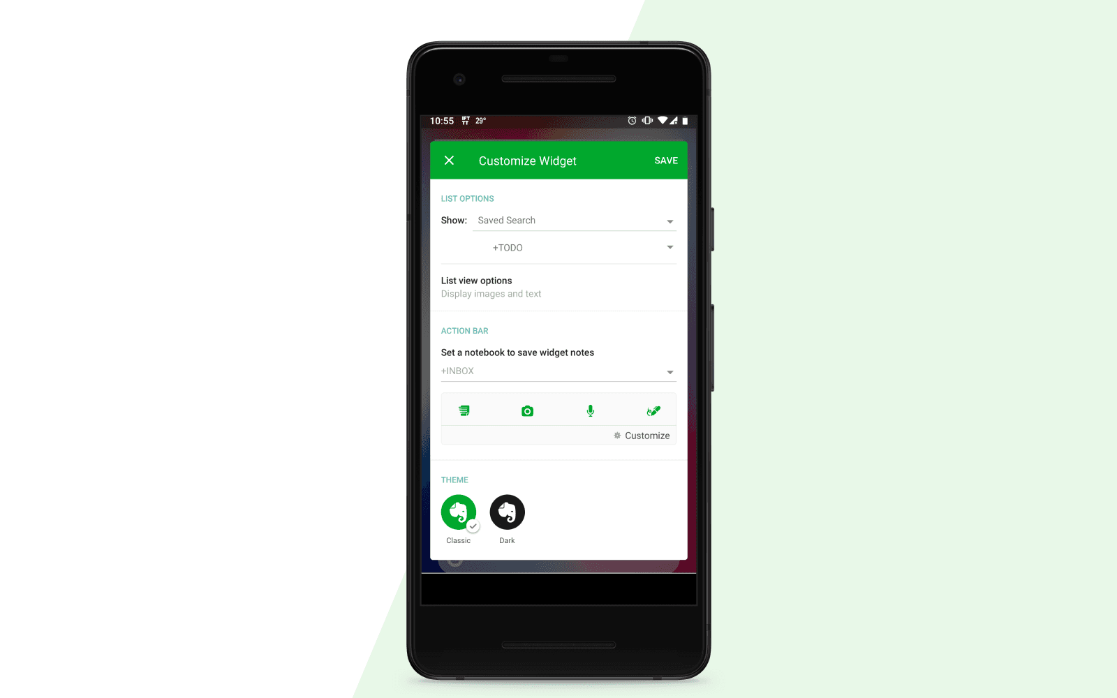 This kind of flexibility allows me to turn my Android widget into an inbox of my inspiration and to-do items. All new ideas and tasks are entered on the go.