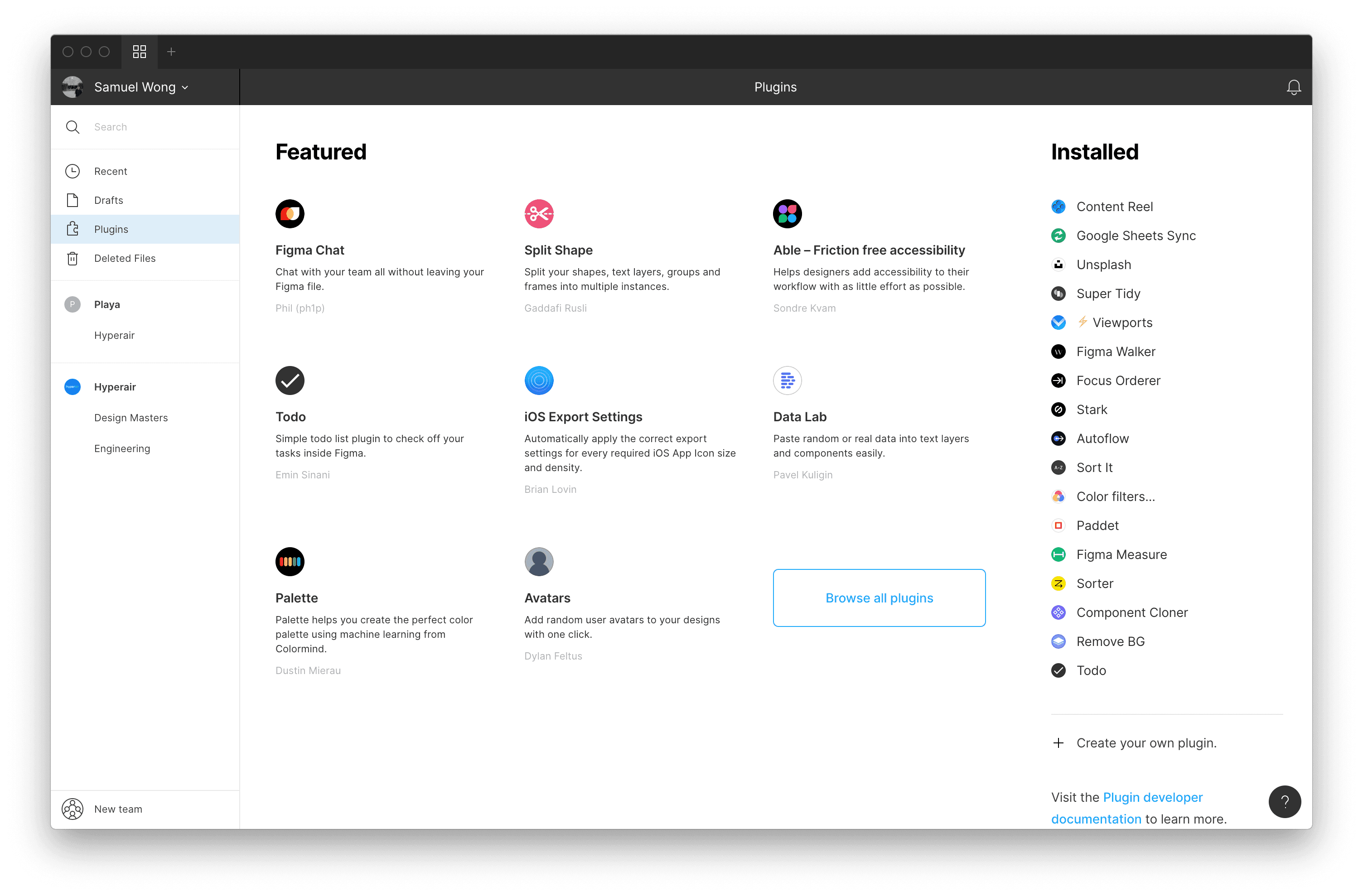 If you have updated Figma to the latest version, you can find it on the main page. Installing plugins are slightly easier than Sketch as everything is distributed through Plugins page. Simply click install the plugin will be downloaded in no time.