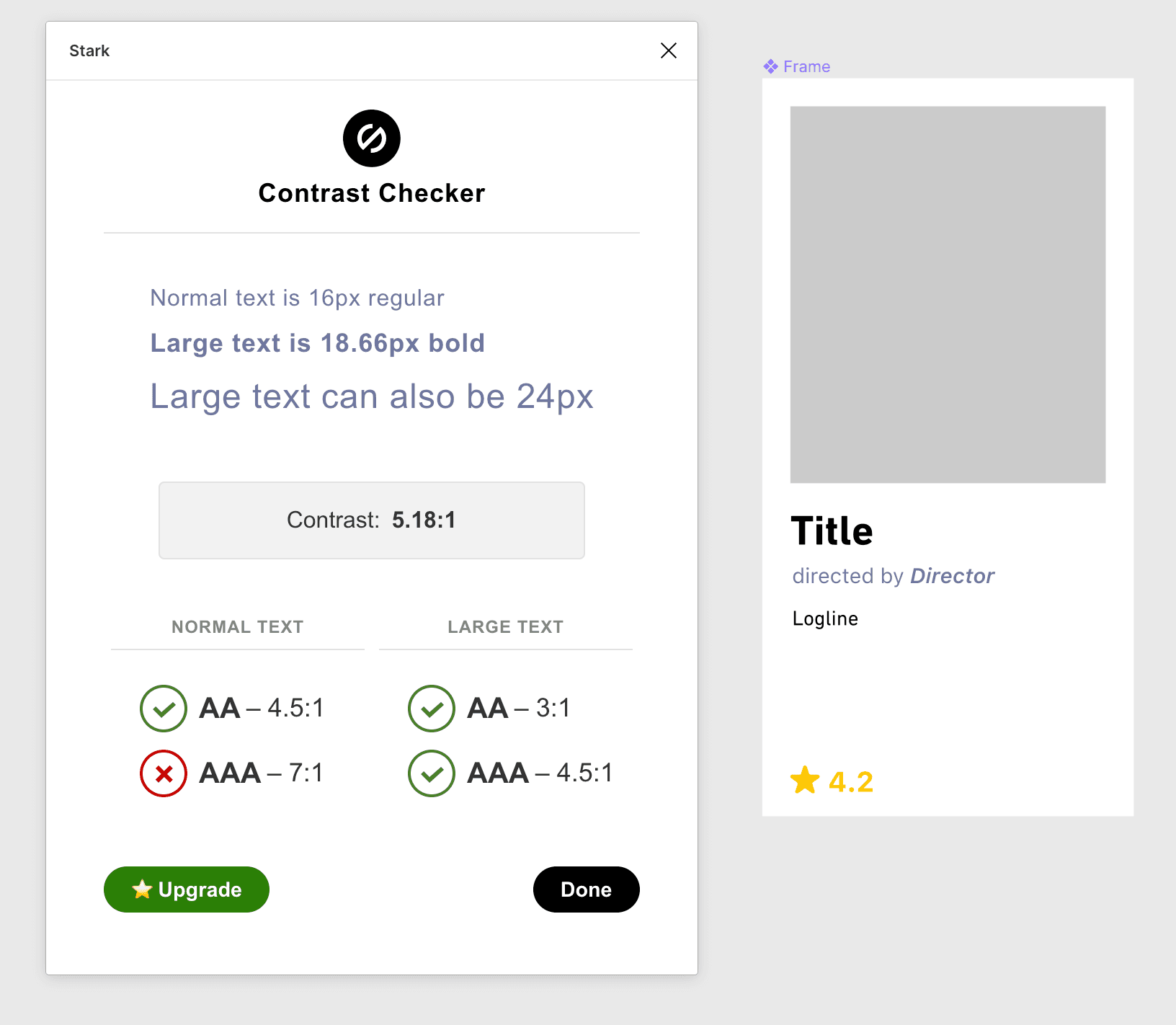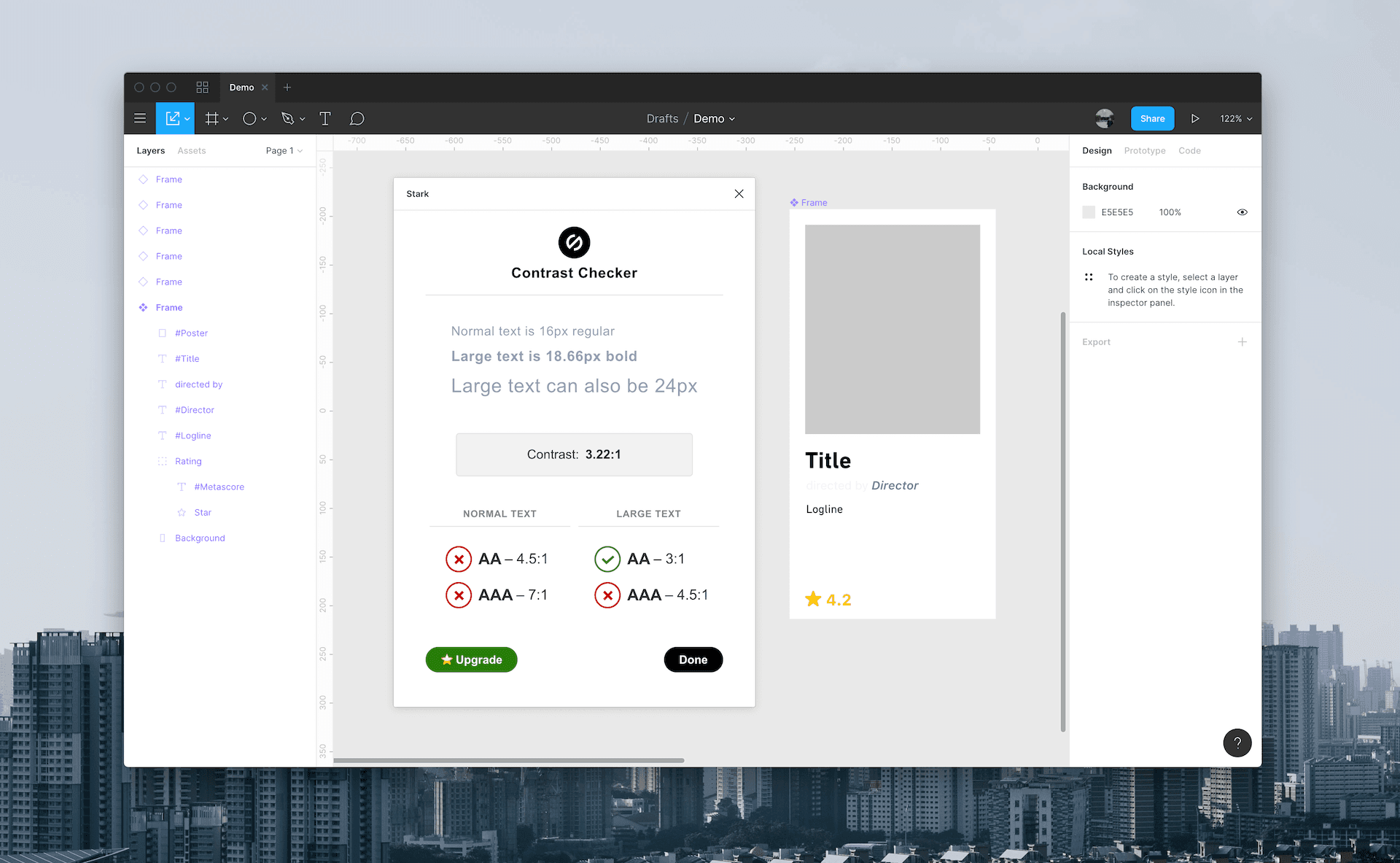 Stark simplified the process by selecting two layers in Figma. It also can simulate 4-8 colorblind situations.